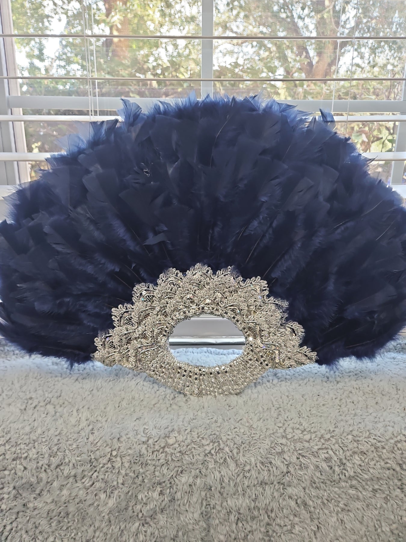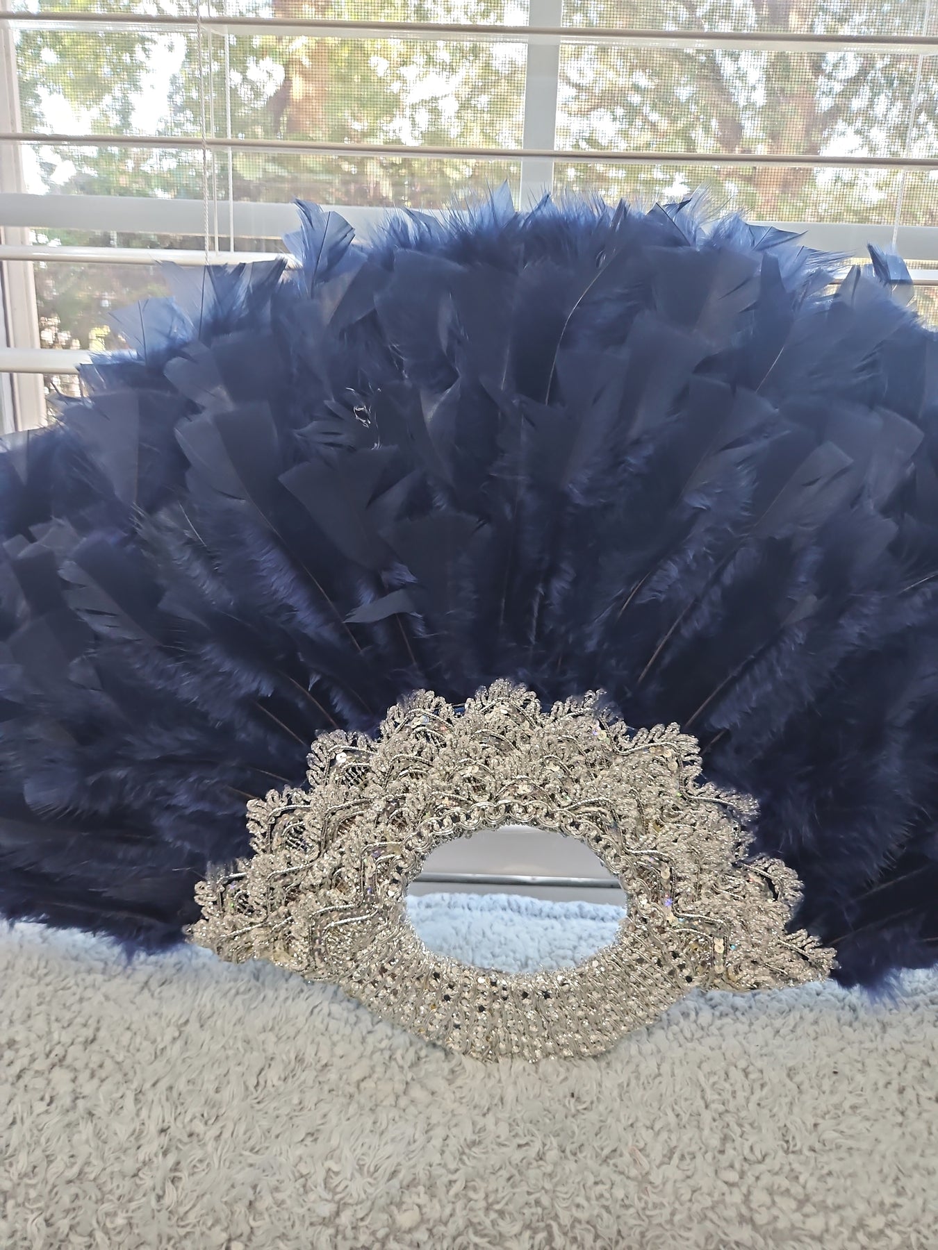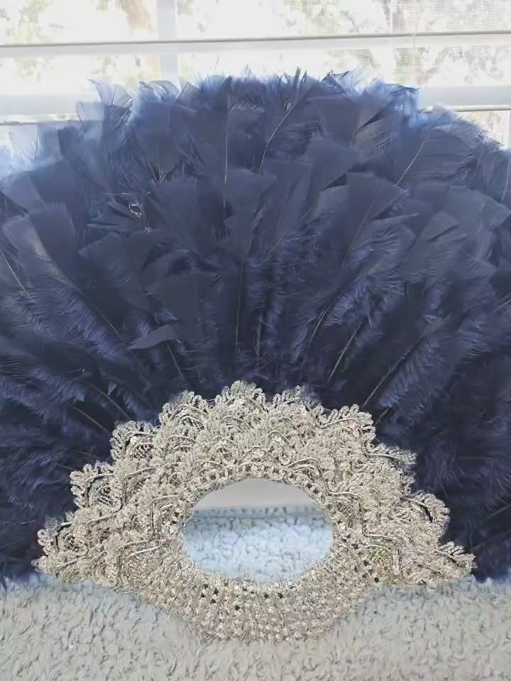 Beautiful Full Handmade Bride/Celebrant/Party Guest Navy Blue Handfan
